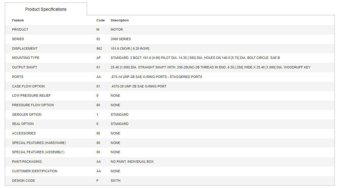 Quick view Add to Cart The item has been added WF104-1217Y WFD Hydraulic Motor 6.2 ci .875" 13 Tooth Shaft Dual Port SAE B Flange MSRP: Was: Now: $370.44