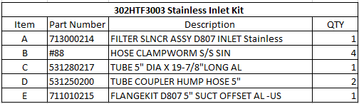 GD Kit D807/907 Pres/Vac SS Inlet