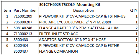 GD T5CDL Mounting Kit 3" Inlet 3" Outlet